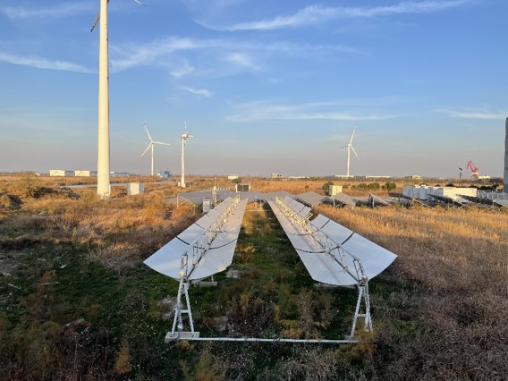 项目位于江苏省盐城市大丰区。系统由光伏、风电、槽式太阳能集热器、锂电池储能仓、相变储热装置、热泵、相变储冷装置、换热器,控制系统及相关管路阀门等组成。相变储热装置储热量200kWh,供应蒸汽约0.3吨;储冷装置储冷量100kWh。